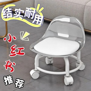 亚克力小凳子滑轮矮凳家用静音万向轮小椅子儿童学步可移动靠背椅