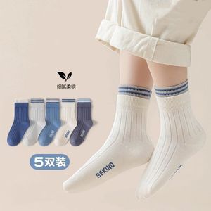 男童袜子春秋款儿童中大童棉袜中筒纯色秋冬吸汗男孩学生运动袜子
