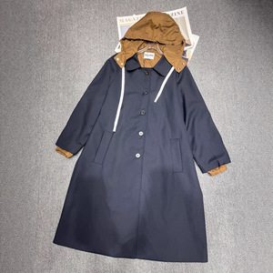 miu フェイクツーピースロングウインドブレーカージャケット英国スタイルレディース 25 初秋 7 月新作帽子取り外し可能なコントラストカラージャケット