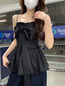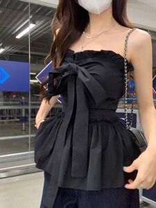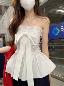 甘いスタイルの白い蝶ネクタイチューブトップ女性の夏フレンチフリルシックなウエスト痩身トップ