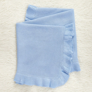 temu希音亚马逊宝宝纯棉荷叶边针织毯盖毯新生儿抱毯跨境速卖通