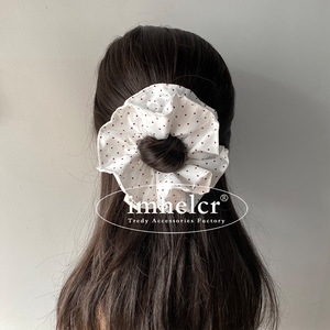 日韩手作红色小波点纽扣方巾大肠发圈甜美百搭低马尾丸子头绳发饰