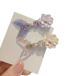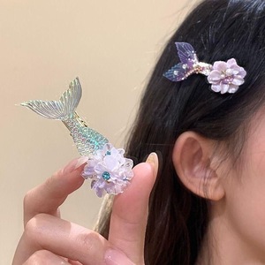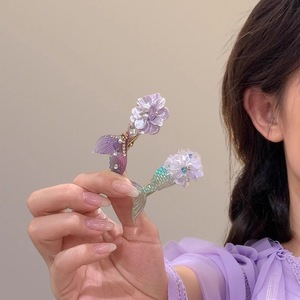 甜美少女紫色梦幻美人鱼发卡度假风鱼尾发夹侧边夹刘海夹花朵头饰