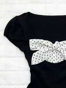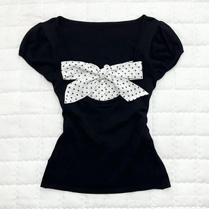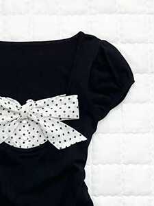 Pure Desire 黒ラウンドネック水玉模様のリボン半袖 Tシャツ女性のための 2025 夏新スリムホットガールハイストリートデザイントップ