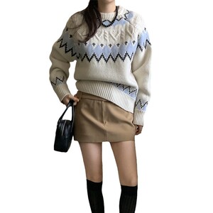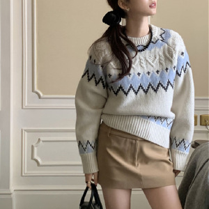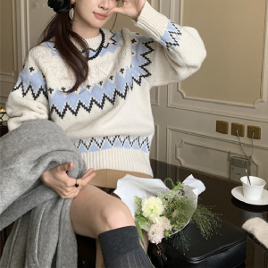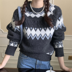 提花温柔风针织衫2025秋冬复古优雅气质洋气显瘦费尔岛毛衣套头女