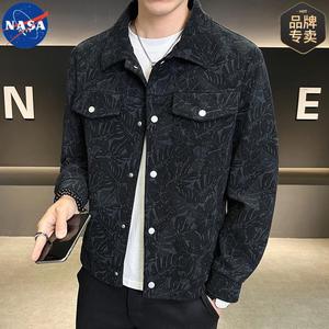 NASA品牌高质量灯芯绒夹克外套秋季宽松痞帅休闲潮牌翻领上衣男装