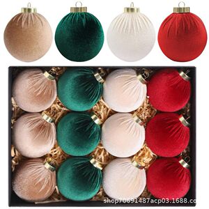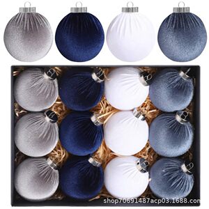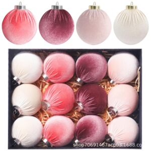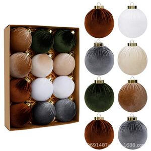 跨境丝绒圣诞树装饰品8CM包布球套装圣诞装饰节日挂件绒布圣诞球