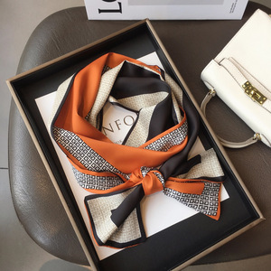 字母橘色拼 16*145cm双层真丝缎面