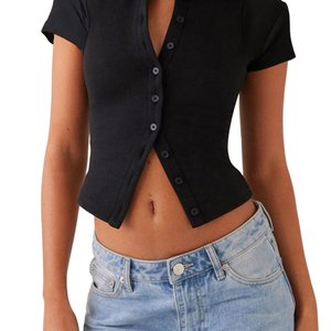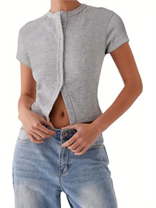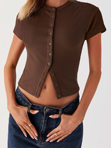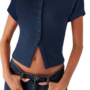 レディース ネイビー ブルー カジュアル ボタン アップ ニット トップ クロスボーダー ドロップシッピング
