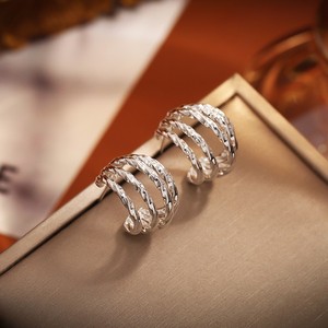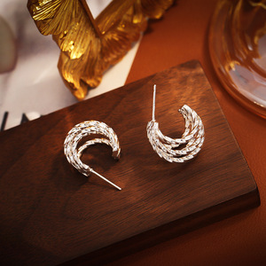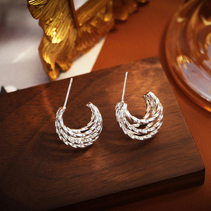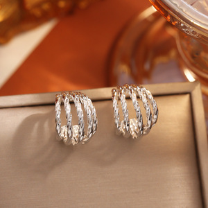 欧美跨境银色多层纹理耳环高级感时尚轻奢C圈耳饰女冷淡INS风耳钉