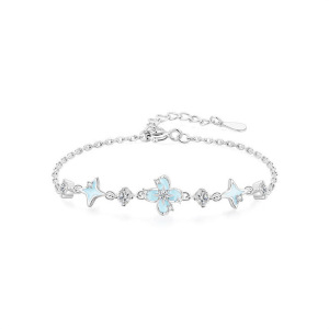 S925银星芒四叶草手链女生轻奢夜光珐琅花朵手环情人节日礼物手饰
