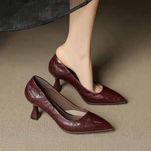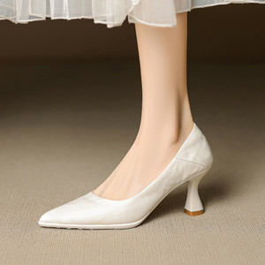 运动大底细跟法式尖头气质浅口单鞋女韩版舒适百搭通勤高跟鞋