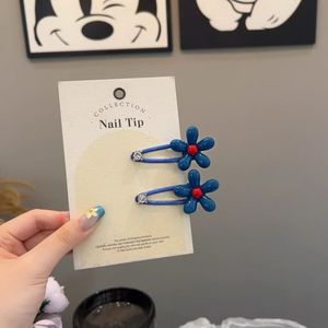 韩国东大门新款蓝色花朵发夹女侧边刘海鸭嘴夹子头饰甜美少女发饰