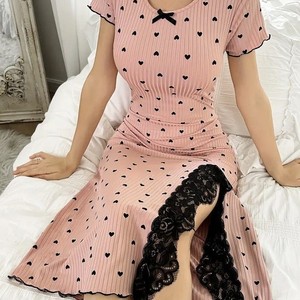 TEMU热销提花坑条长裤吊带爱心睡衣套装可外穿家居服女夏慵懒风
