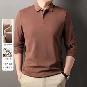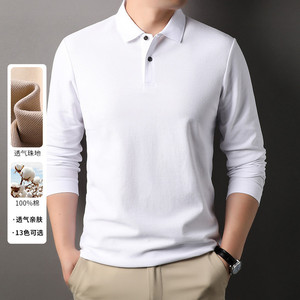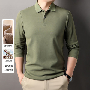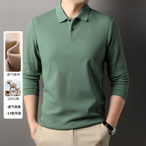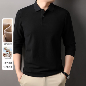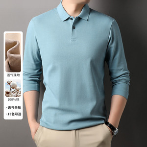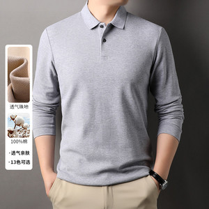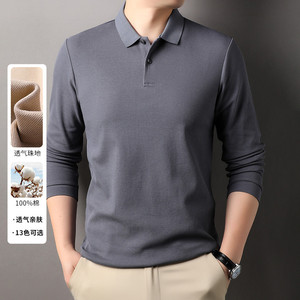 100%纯棉240克长袖Polo衫男商务休闲纯色翻领纽扣棉T恤上衣打底衫