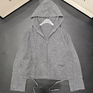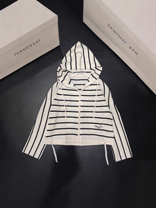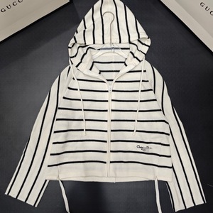 D家高定25早秋新款条纹连帽拉链针织开衫时髦慵懒风软糯长袖开衫