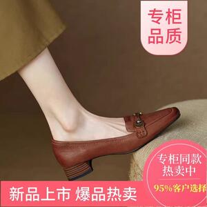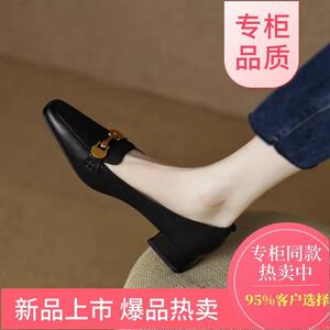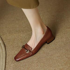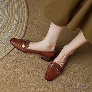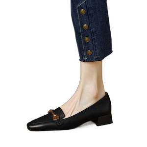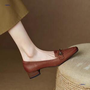 西洋スタイルフレンチレトロ2025秋の新作多用途シングルシューズミッドヒール太いヒール小さな革靴ローファー婦人靴