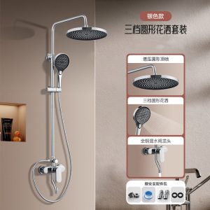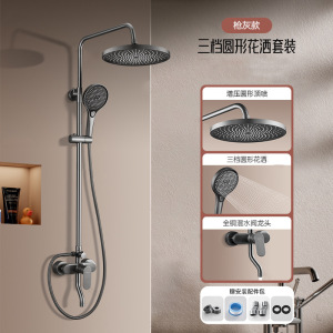 轻奢灰(三出水)圆形大出水量花洒套装