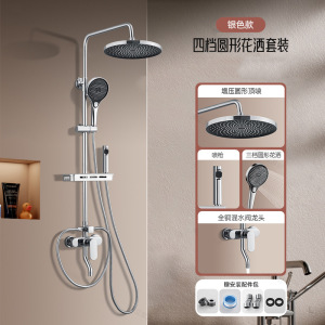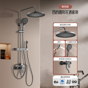 轻奢灰(四出水)圆形大出水量花洒套装