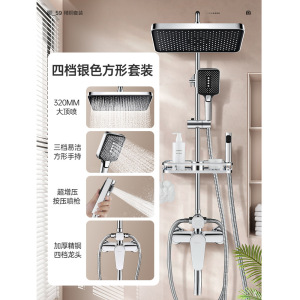 暗夜银(四出水)方形大出水量花洒套装