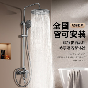 枪灰卫浴淋浴花酒套装家用增压大出水淋雨喷头浴室全铜花洒沐浴器