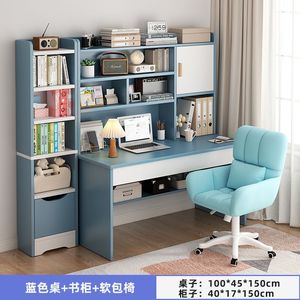 100cm-蓝色单桌+书柜+软包椅