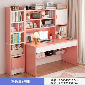 100cm-粉色单桌+书柜