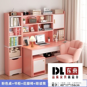 100cm-粉色单桌+书柜+凳+软包椅
