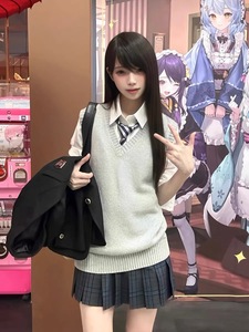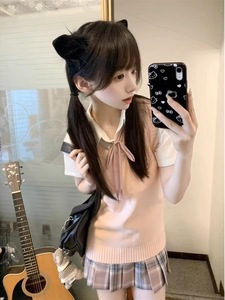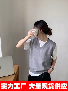 包芯纱面料 2025春秋款叠穿新款宽松复古针织毛衣马甲女背心外套