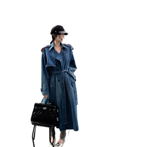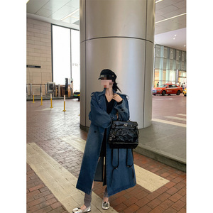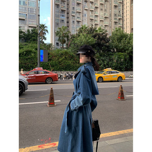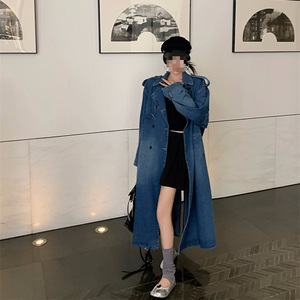 T5C水洗牛仔风衣外套秋季宽松复古长款高级感大