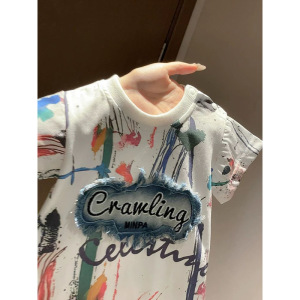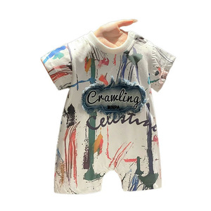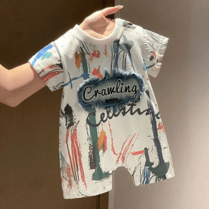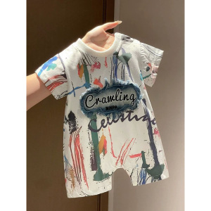 夏季男宝宝满月帅气连体衣婴幼儿百天周岁外出哈衣爬服网红儿童