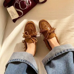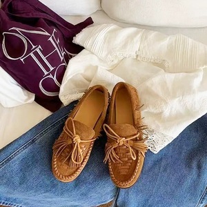 2025春秋新款 反绒皮船鞋女 平底苏穗流苏结防滑软底复古通勤单鞋