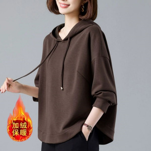 加绒加厚卫衣女士新款春秋季时尚洋气美拉德爆款连帽休闲宽松上衣