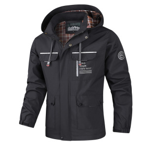 跨境码新款夹克工装多口袋夹克男春秋休闲时尚可脱卸帽户外外套男