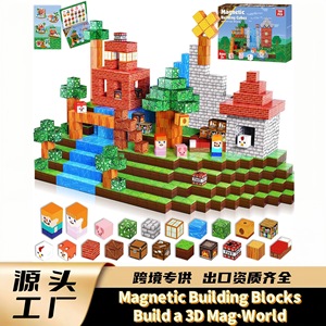 跨境亚马逊草原风车之家磁力方块积木套装感官磁砖块搭建幼儿礼物