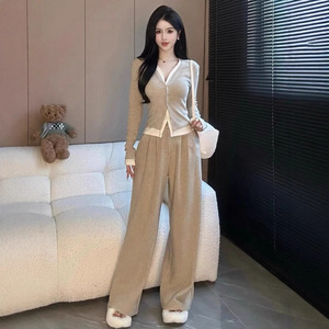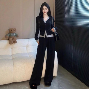 大码女装秋季时尚洋气减龄遮肉显瘦套装女阔腿裤两件套胖mm200斤