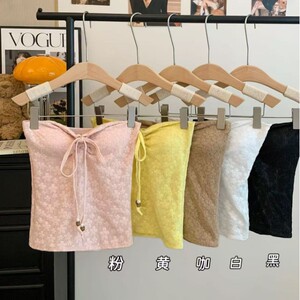2316 # レーヨンスイートホットガールホルターネックサスペンダー立体花柄ベスト夏かわいいビーズ巾着トップ女性用