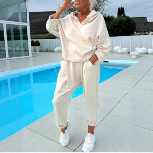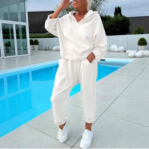 2025 外贸跨境独立站秋季新款爆款女士纯色连帽运动衫两件套
