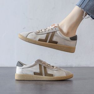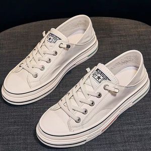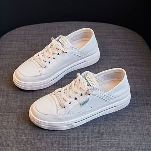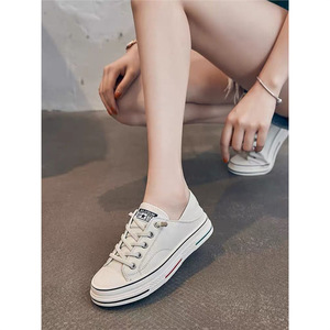 2025春秋季透气真皮增高小白鞋女韩版百搭单鞋平底帆布鞋板鞋