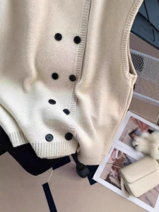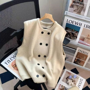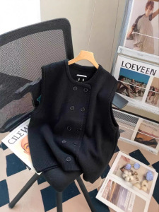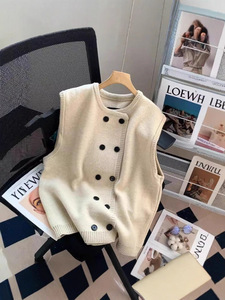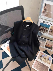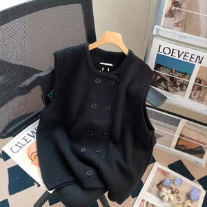 2025 春と秋の新ソリッドカラーノースリーブニットベスト女性のデザイン韓国スタイルルーズアウターレイヤリングトップトレンディ