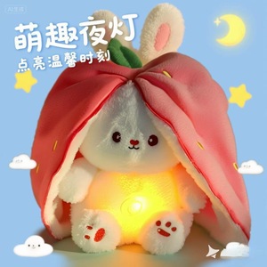 跨境会呼吸发光的毛绒玩具草莓变身兔安抚哄睡陪伴儿童礼物