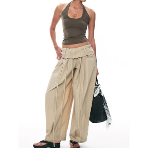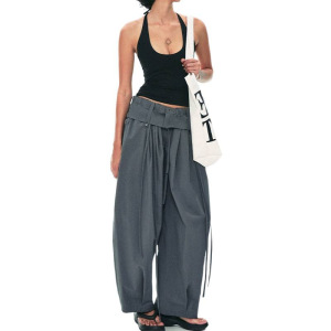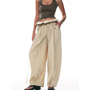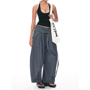 25SS 夏ルーズワイドレッグスリムストレートソルトシュリンクバルーンパンツカジュアルパンツ怠惰なデザイン