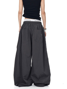 美式复古抽绳褶皱速干伞兵裤男女新款松弛感宽松休闲百搭阔腿裤潮