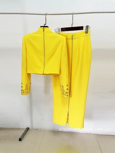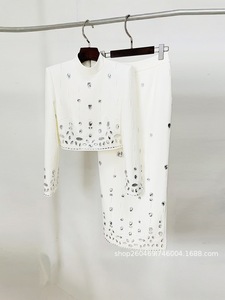 2025欧美风新款钉珠镶钻短款上衣长裙套装两件套