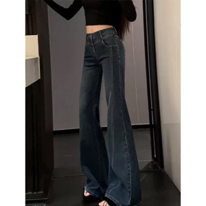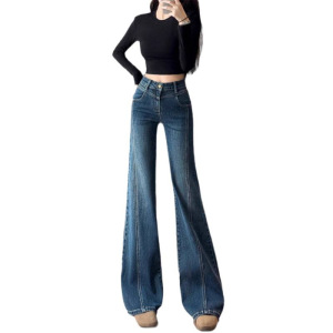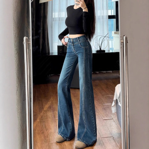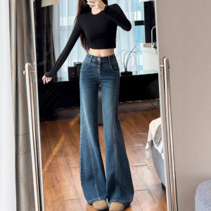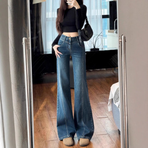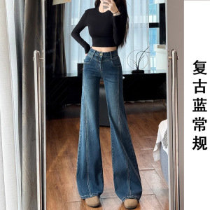 复古高腰微喇牛仔裤女2025新款大码胖梨型身材显瘦弹力喇叭裤子
