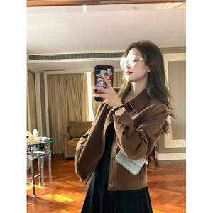 咖色鹿皮绒外套女短款2025春秋款韩系宽松休闲复古小个子夹克上衣
