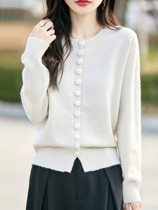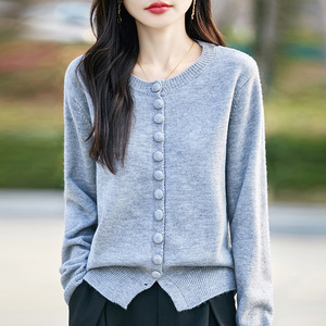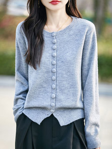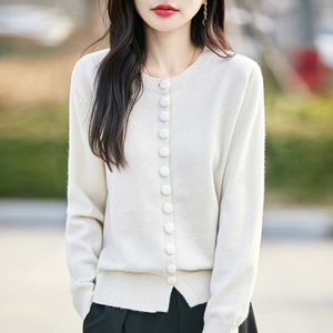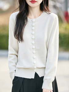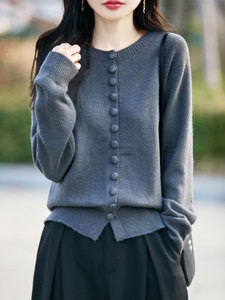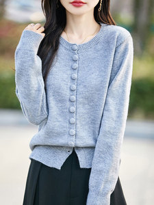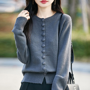2025 韓国版の春と秋の新無地ラウンドネックニットカーディガンジャケットルーズショートレディースセーターアウタートップ