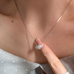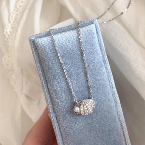 S925纯银锆石贝壳珍珠吊坠项链女小众高级轻奢百搭锁骨链新品配饰