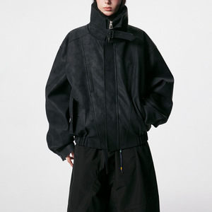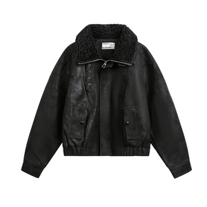 Jiayiku トレンディなブランド 2025 秋オールドマネースタイルアメリカンレトロ構造スプライシングルーズレザージャケットオートバイジャケット