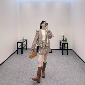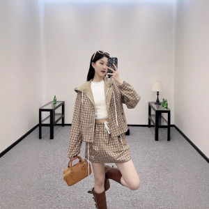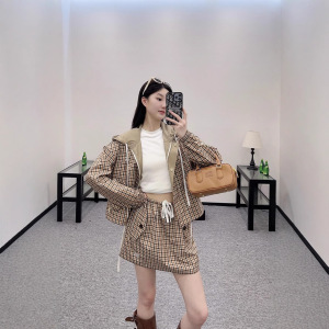 mm家25ss春夏新款格子连帽外套+短裙套装+格纹连帽风衣外套系带